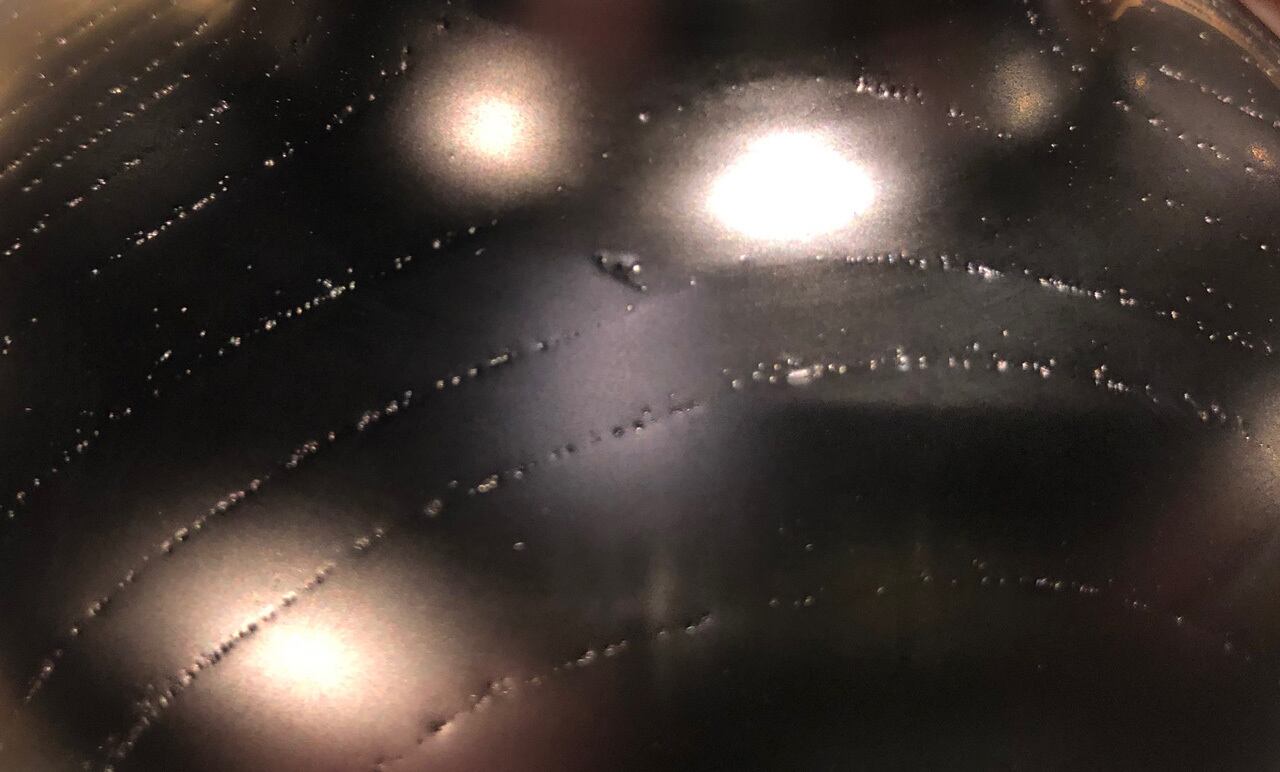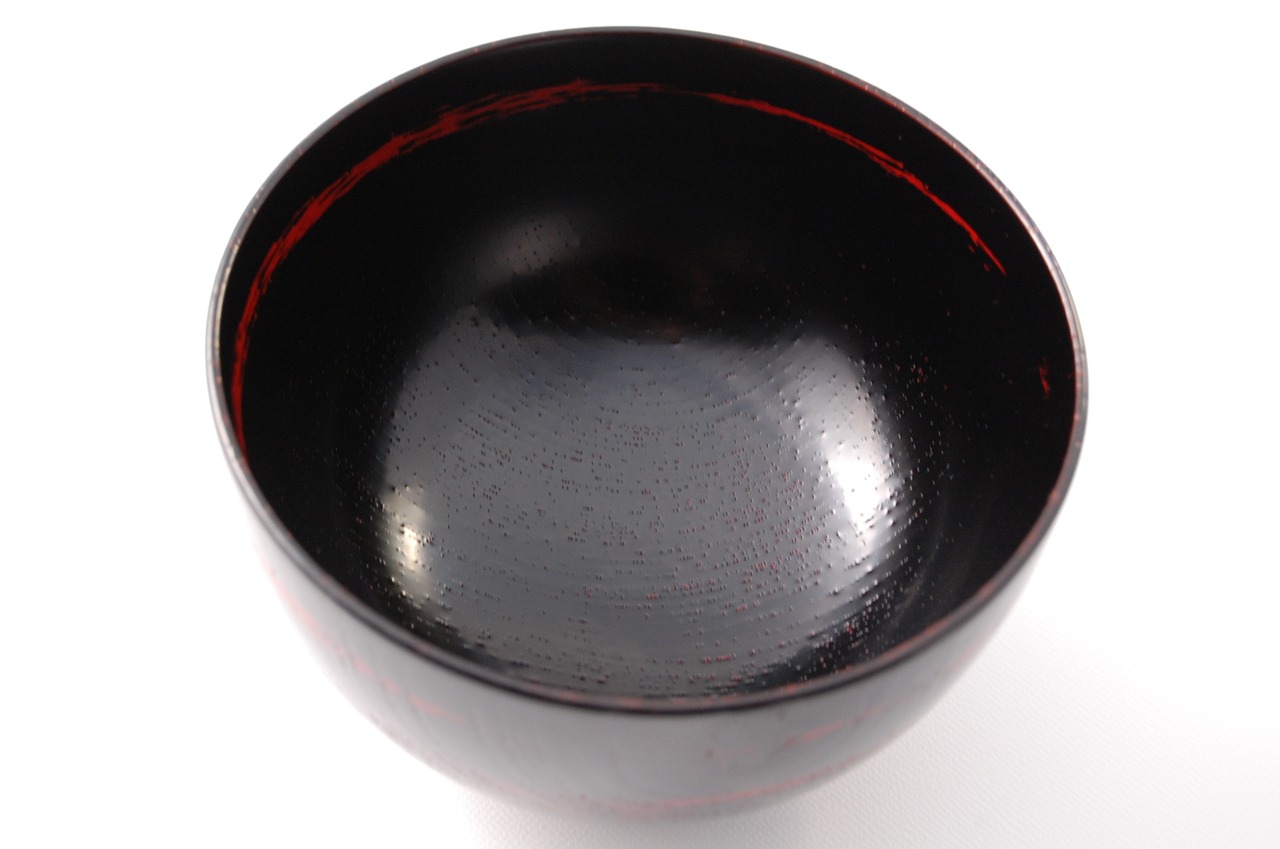 上塗りの際、漆の塗膜に付着した多少の塵(チリ)はご容赦ください。(画像をご参照ください。)
