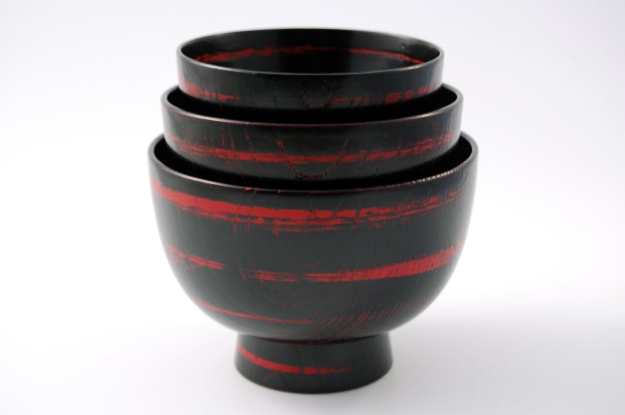 木目や黒漆のかすれ具合、朱漆の出具合、表情は一点ずつ異なります。お選びできません。ご了承ください。